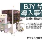 - 海苔瓶の当紙結束を自動化|当紙付瓶結束装置 BJY型|ヤマショウ株式会社海苔瓶の当紙包みを均一に。当紙付瓶結束装置 BJY型 導入事例 コンベヤに供給された瓶詰めのキャップ部に当紙をかぶせ、瓶の首部を江戸打紐(人絹・ナイロン等)で結束して搬出する装置です。処理能力は17個/分。ギフト向け商品 […]